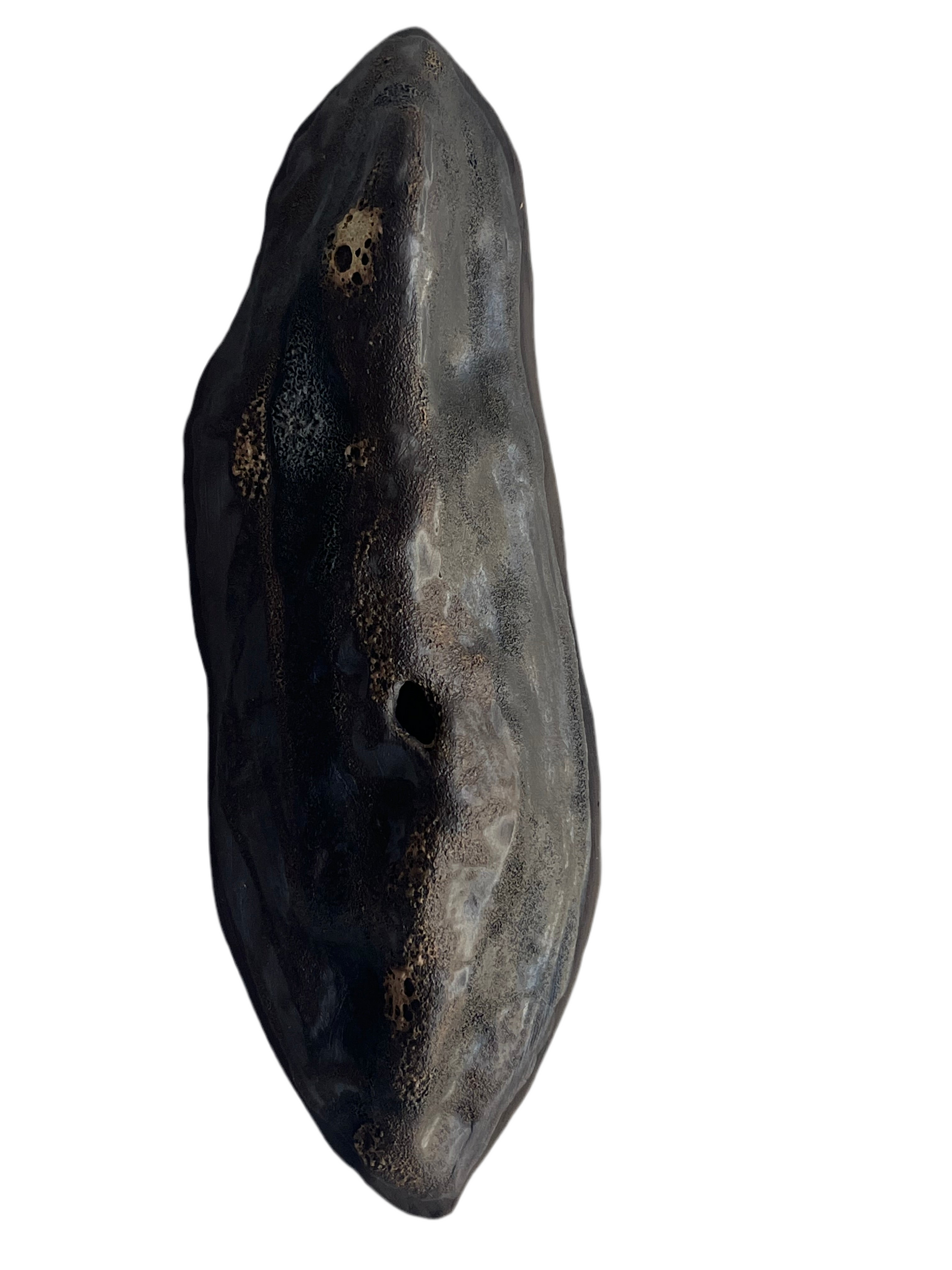 Skulptur af stentøjsler med glasur til ophæng på væg.
